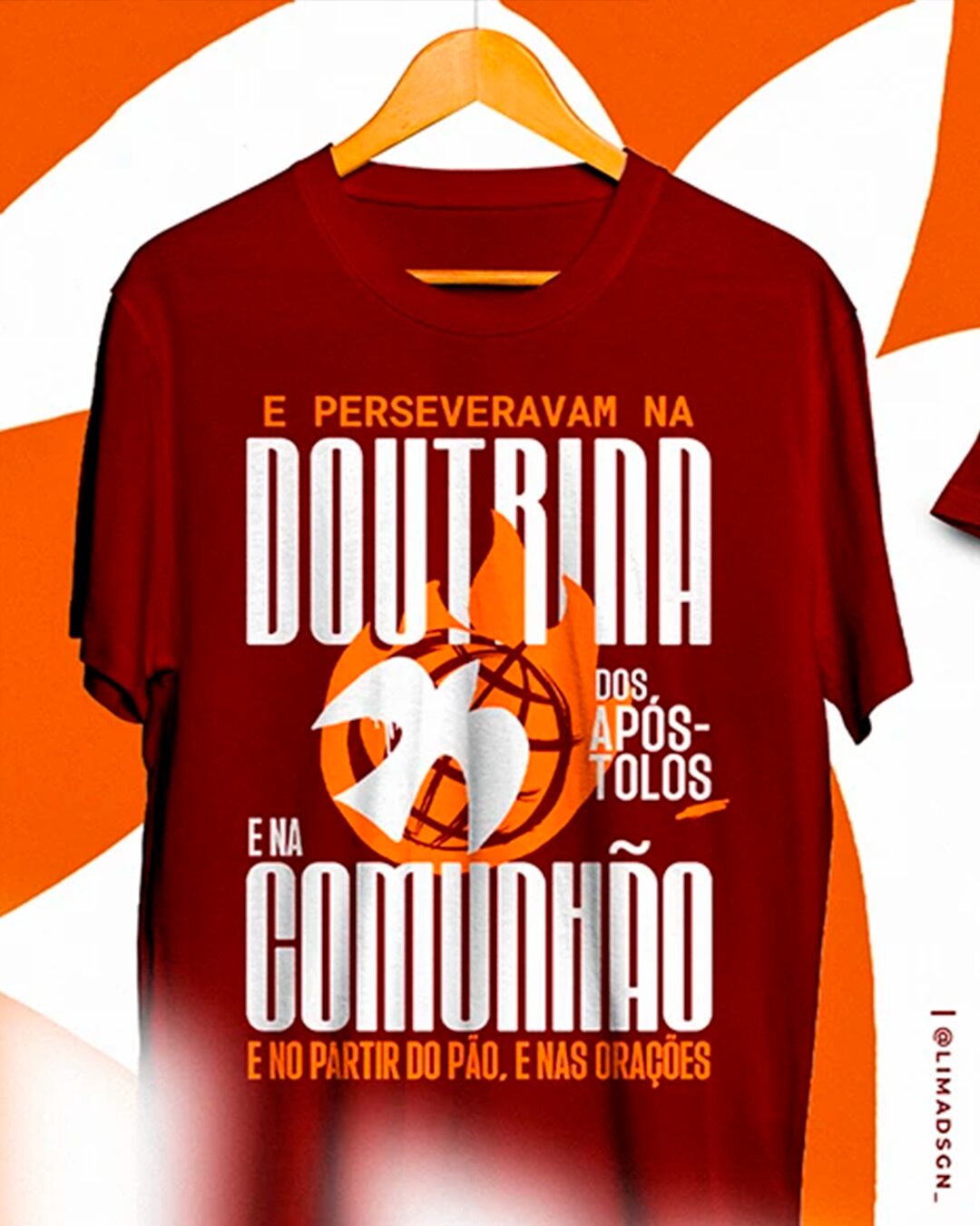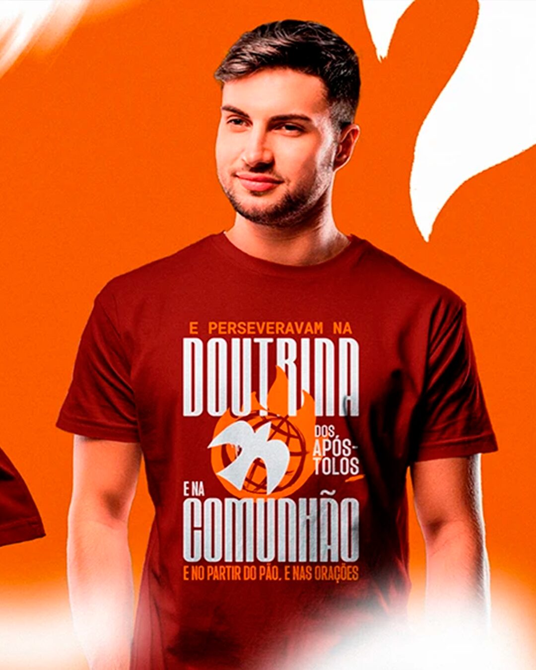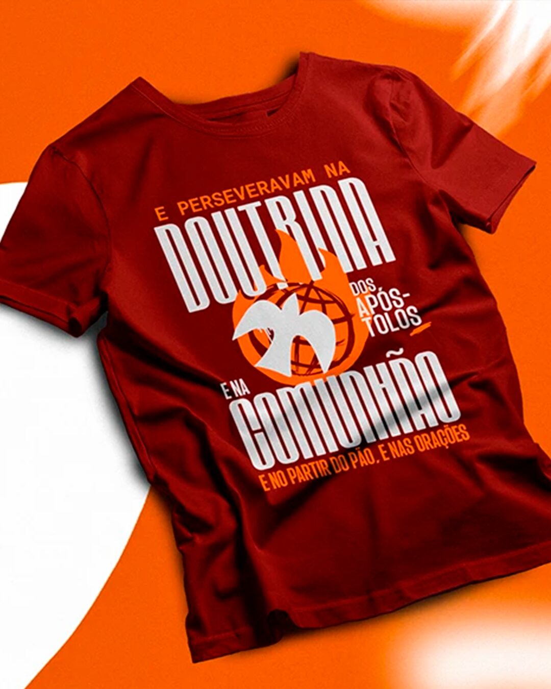 Camiseta personalizada “E perseveravam na doutrina dos apóstolos e na comunhão, e no partir do pão” – Inspirada em Atos 2:42, esta peça carrega uma mensagem de fé, unidade e dedicação à vida cristã.