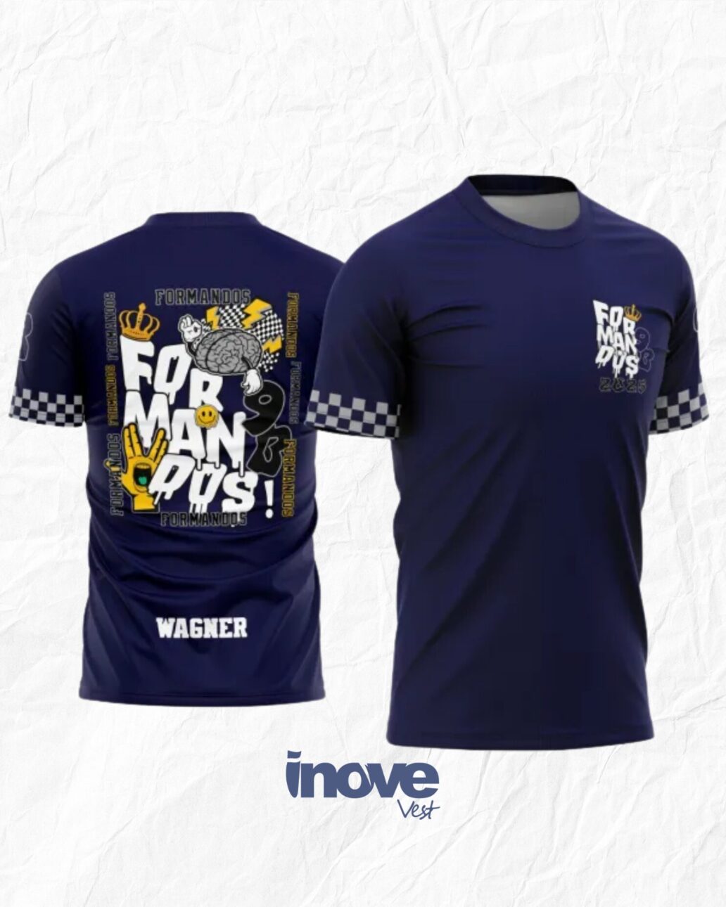 A Camisa Formandos Nono Ano Coroa simboliza conquista, liderança e sucesso, características que representam a turma que conclui o 9º ano. Com um design elegante e moderno, a coroa é o destaque da peça, reforçando o protagonismo e a importância desse momento inesquecível. Produzida em tecido leve, confortável e resistente, é perfeita para festas, ensaios fotográficos, eventos de formatura e para guardar como lembrança duradoura dessa etapa da vida escolar. A estampa em sublimação total garante cores vibrantes e alta durabilidade, mantendo sempre viva a memória da turma.